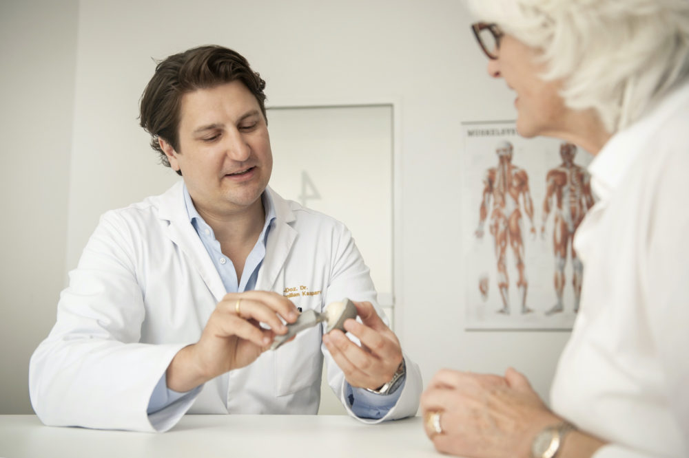 Im Erst­ge­spräch geht es vie­len Pa­ti­en­tin­nen und Pa­ti­en­ten zu­erst um die Frage: „Wie lange dau­ert es, bis ich wie­der ge­hen kann?“ oder „Wie schmerz­haft wird das?“ – das sind ganz ver­ständ­li­che Sor­gen. Ich er­kläre dann, dass die meis­ten schon am Tag nach der Ope­ra­tion mit Un­ter­stüt­zung auf­ste­hen kön­nen und die Schmer­zen dank mo­der­ner Ver­fah­ren heute sehr gut kon­trol­lier­bar sind.